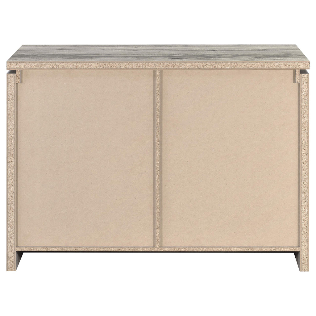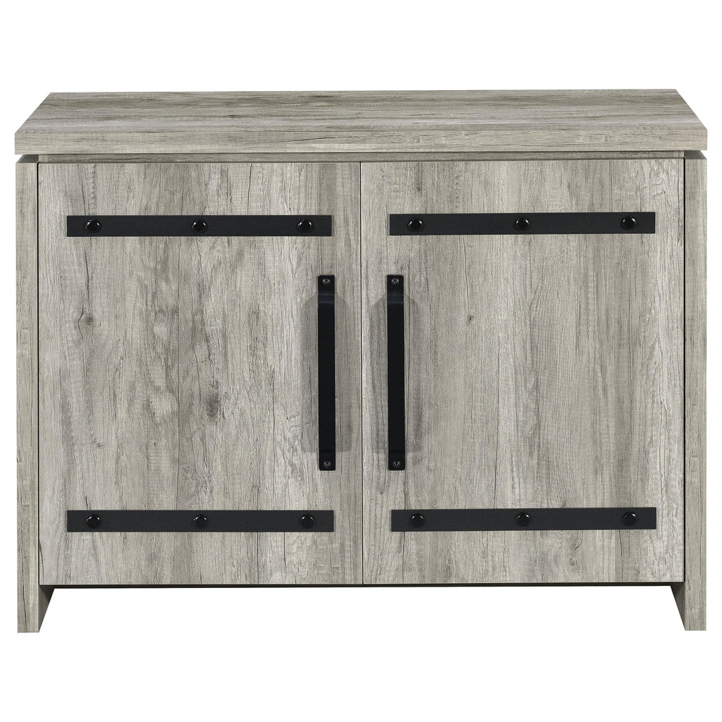 • Grey driftwood finish brings a coastal and homey vibe to this accent cabinet
