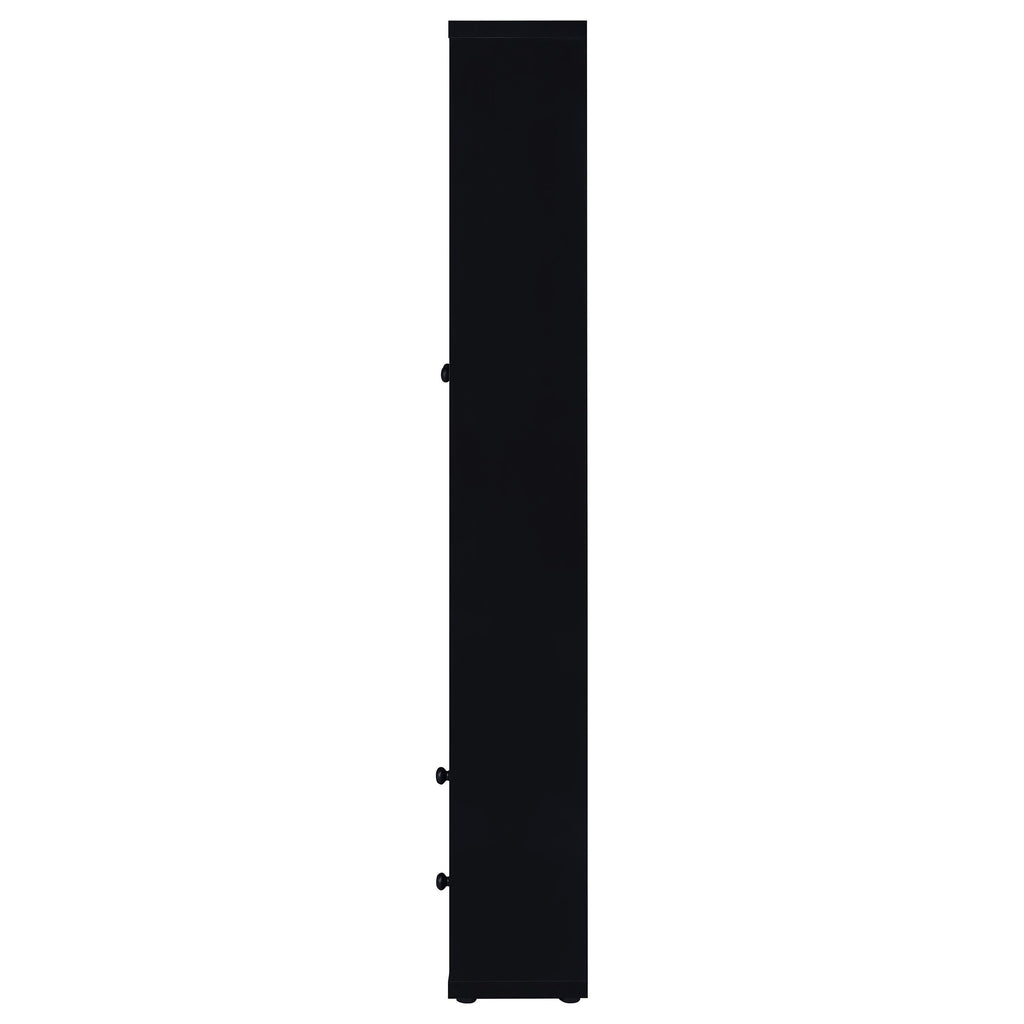 • A clean-lined silhouette features glass doors perfect for displaying decor