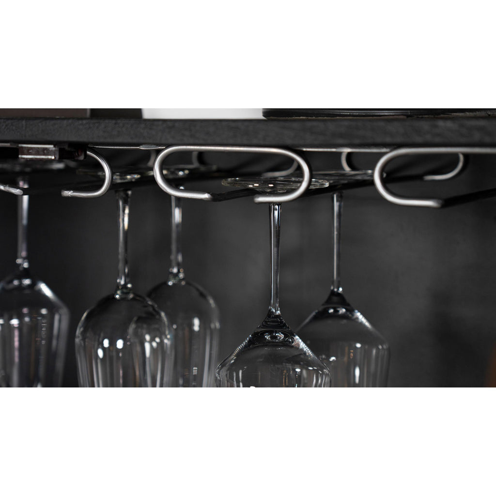 • When opened, the cabinet reveals plenty of space for all your wine and cocktail needs, complete with two interior shelves
