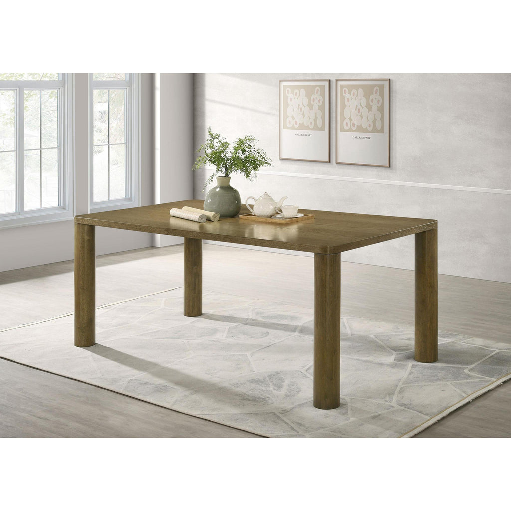 • Simple and inviting, this modern wood dining table features a rectangular silhouette