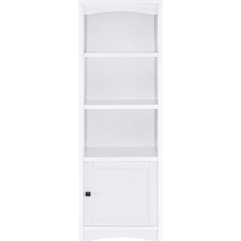 Put finishing touches on a charming media center in your living room with this tower bookcase. Perfect to flank your... Put finishing touches on a charming media center in your living room with this tower bookcase. Perfect to flank your TV stand, it adds easy storage and display space. Its mix of cabinet and open shelving is versatile and stylish, with three shelves, two of them adjustable, on top of a one-door cabinet with one adjustable shelf. Trim details add subtle character and freshness to the overall look. A neutral finish complements surrounding decor and offers stylish appeal in your living room. View more