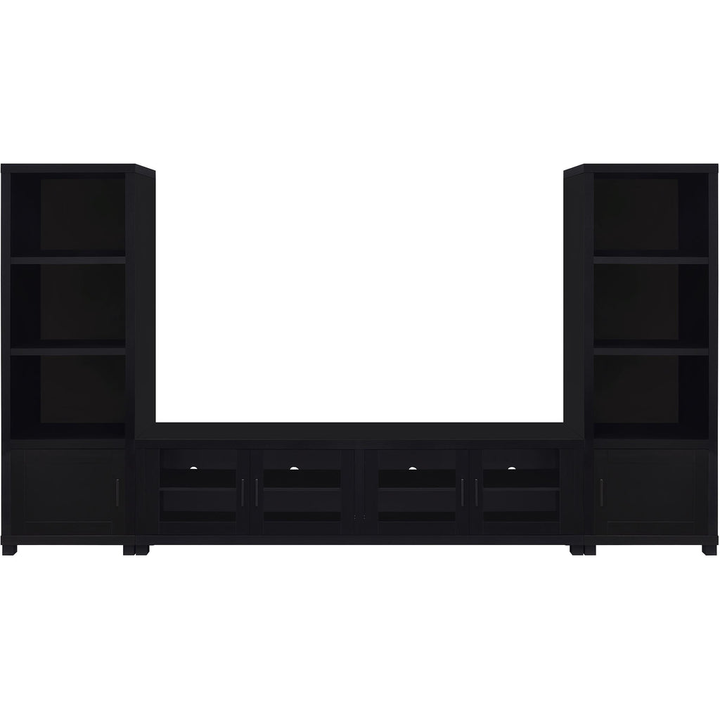 • Three-piece entertainment center includes a 79-inch TV stand and two media towers