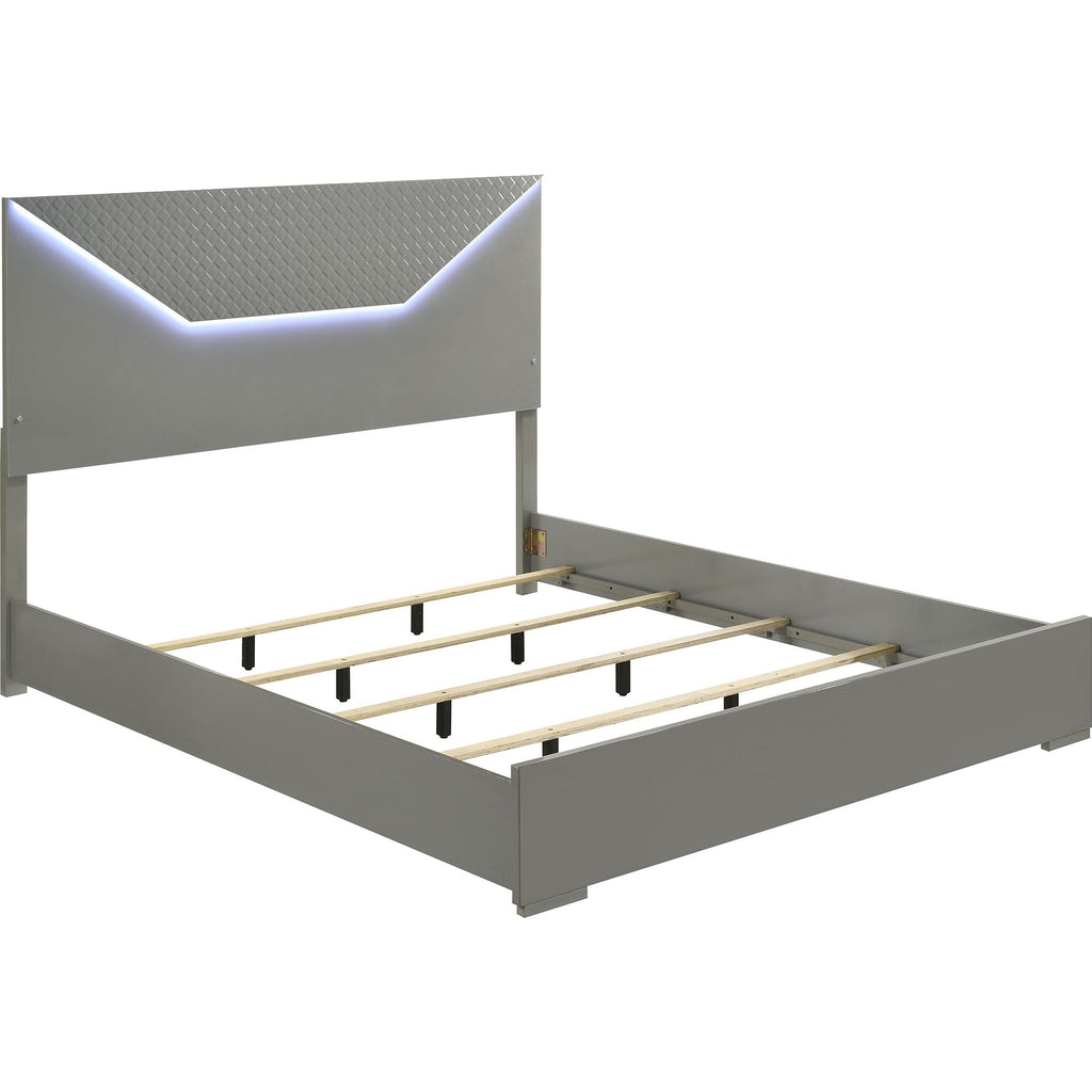 Coaster Furniture Ives 224971Q Queen Panel Bed LED Headboard - Grey High Gloss