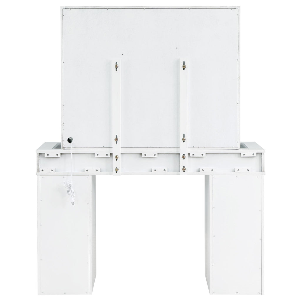• Three-piece white finish vanity set, perfect for a modern bedroom setup