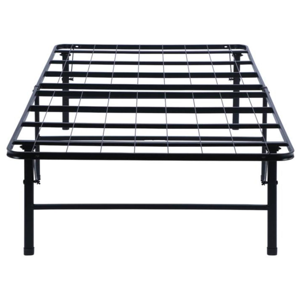 • The epitome of simplistic convenience, this reliable folding bed frame in a black powder coated finish is a must-have platform base in every home