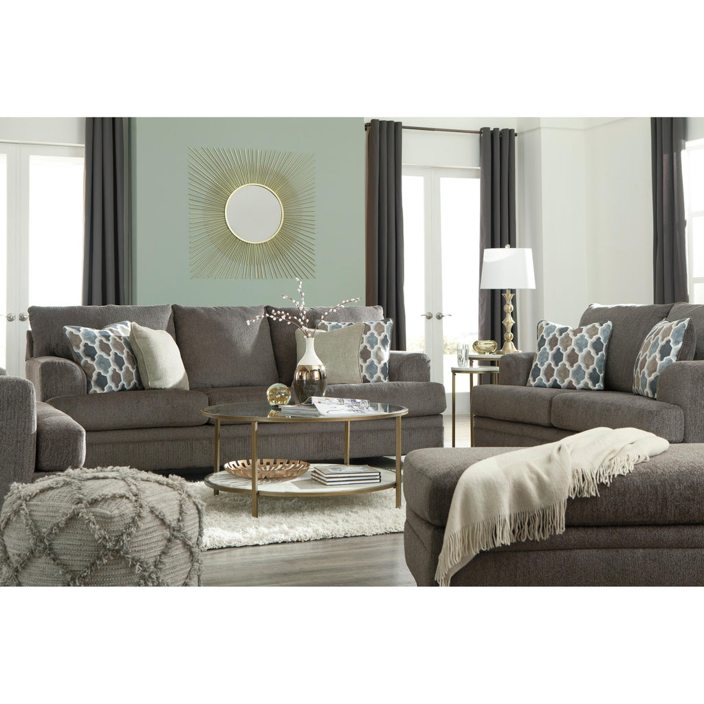 • High-resiliency foam cushions wrapped in thick poly fiber