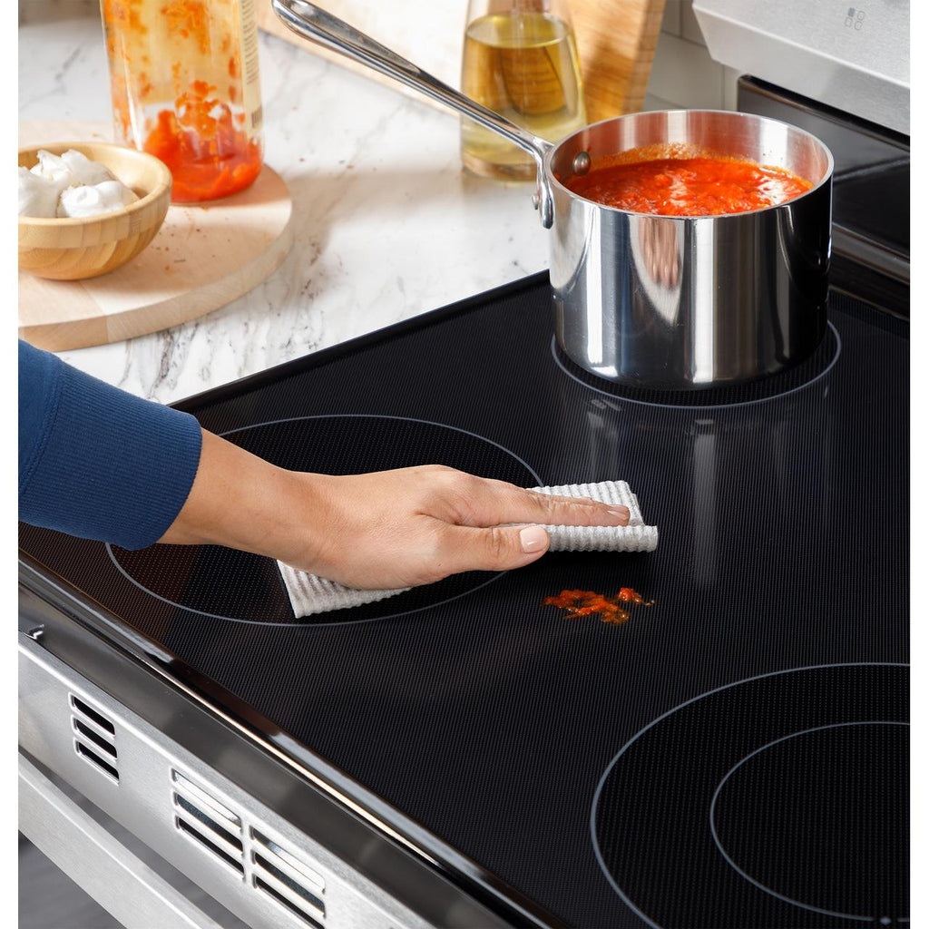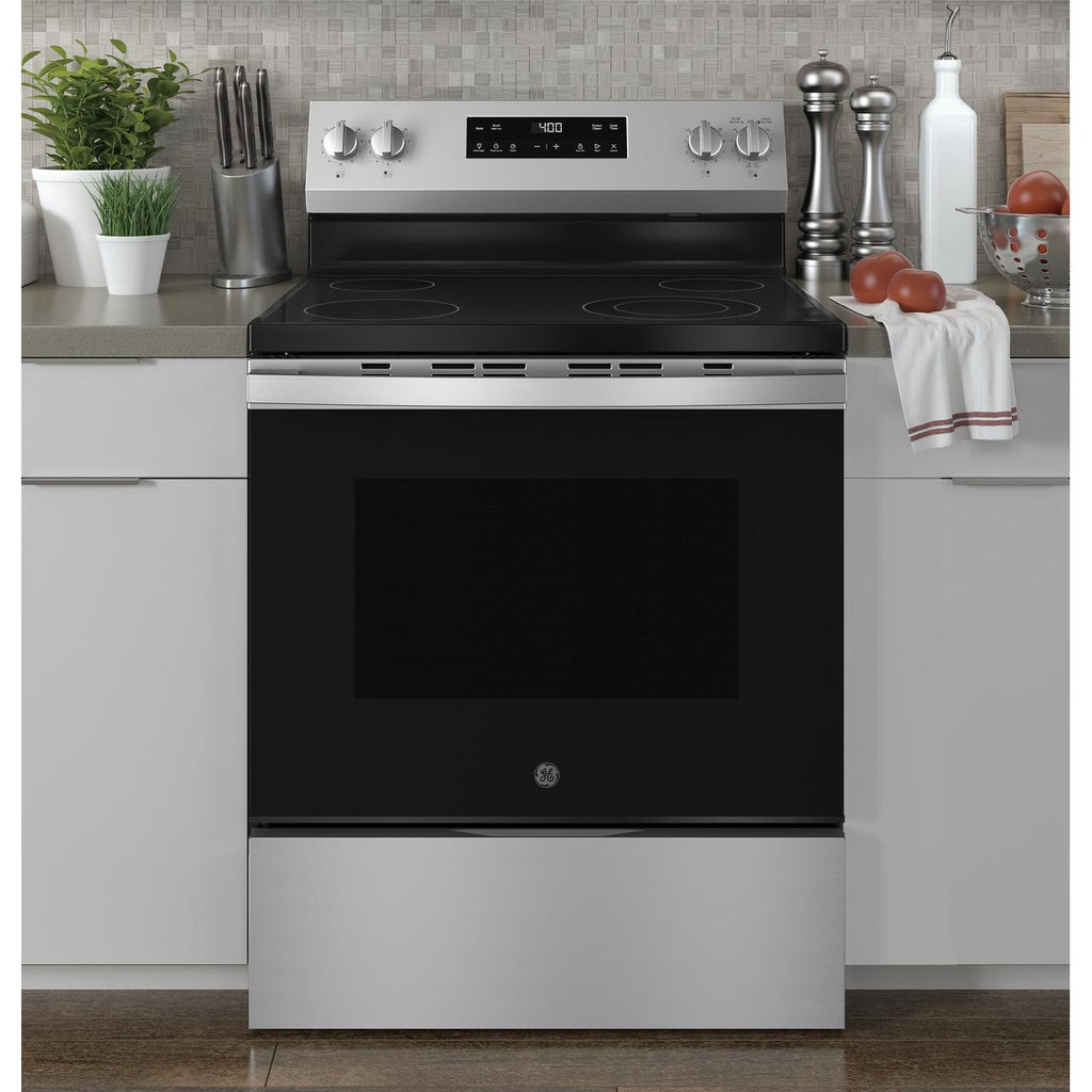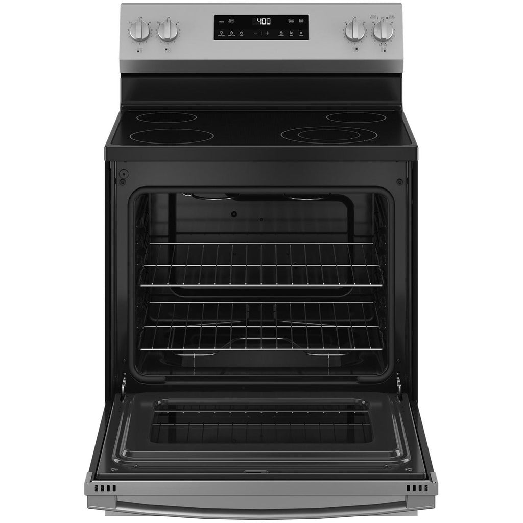 This model features a removable oven storage drawer that offers the perfect place to store cookware and other kitchen accessories.