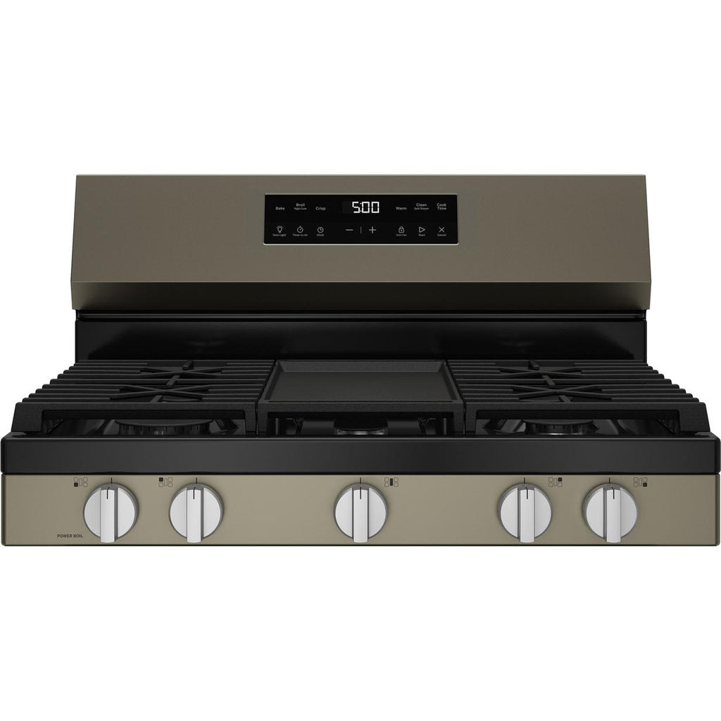 Large oval fifth burner is ideal for griddle or odd-size cookware.