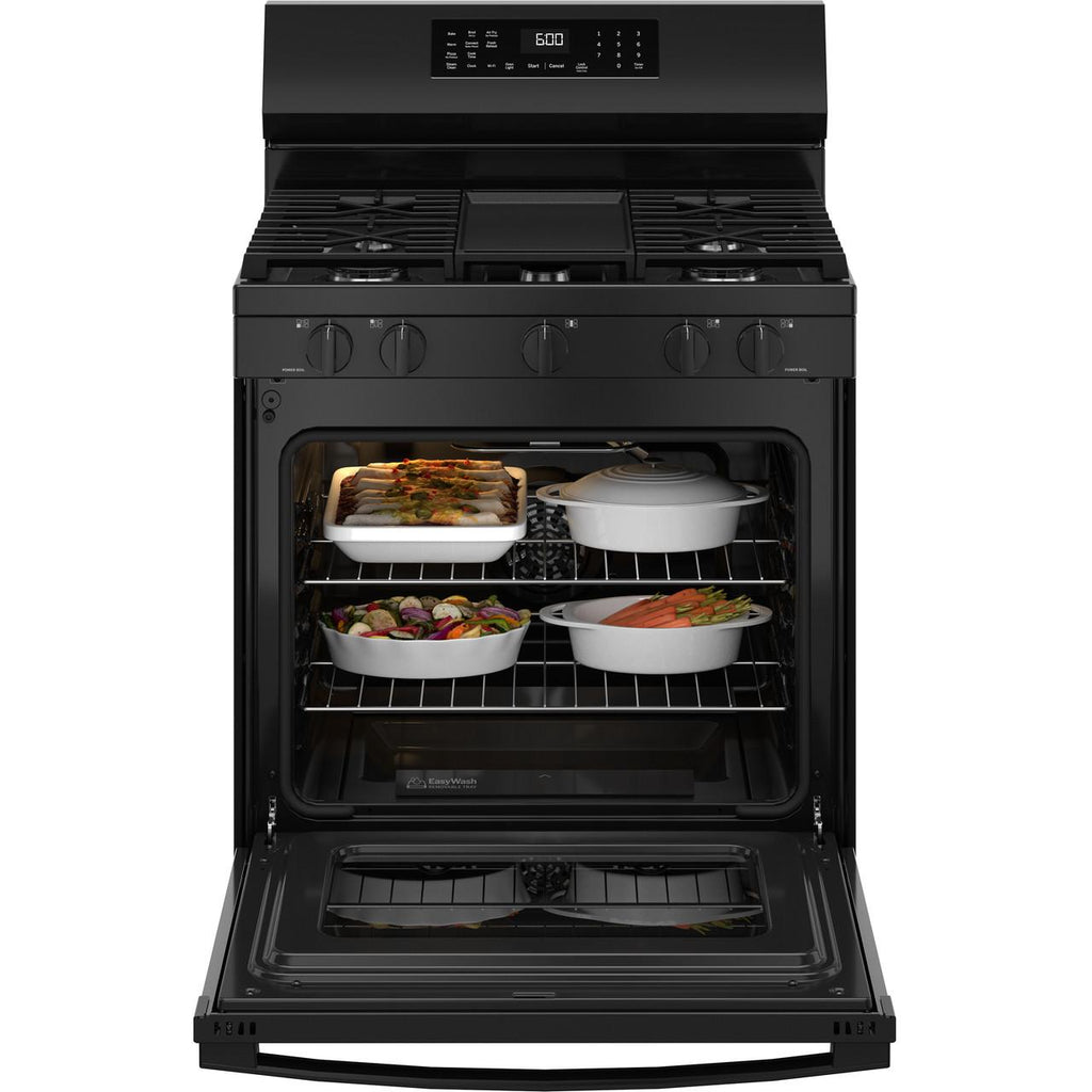 Oven cleaning is easier than ever with the industry-first EasyWash™ Oven Tray. This enameled tray is easily removed and rinsed clean in the sink or, for bigger messes, guaranteed to fit in all GE Appliances dishwashers.