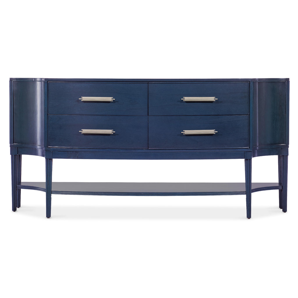 • Finish: Rich dark blue finish over cherry veneers with pewter color custom bar pulls
