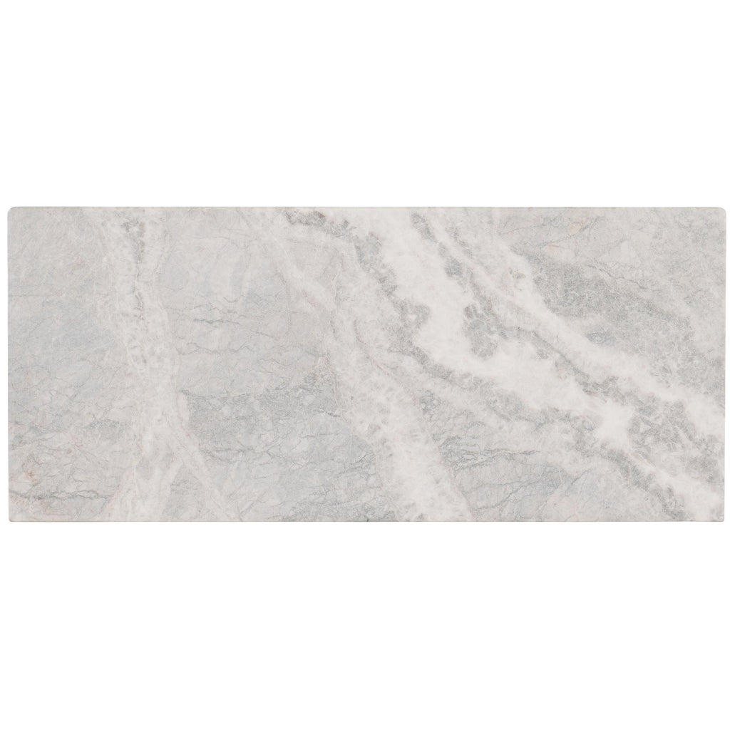 • Finish: Brie: a grey-tone with organic reeded details. Crema marble top. Silver-colored tab pull