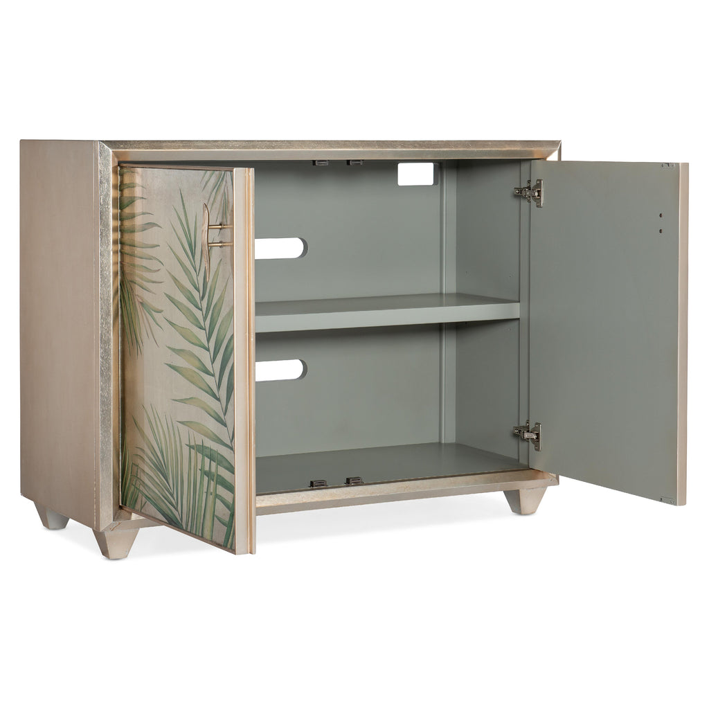 • Finish: Gold leaf with handpainted palm frond doors. Custom palm front shaped gold hardware.