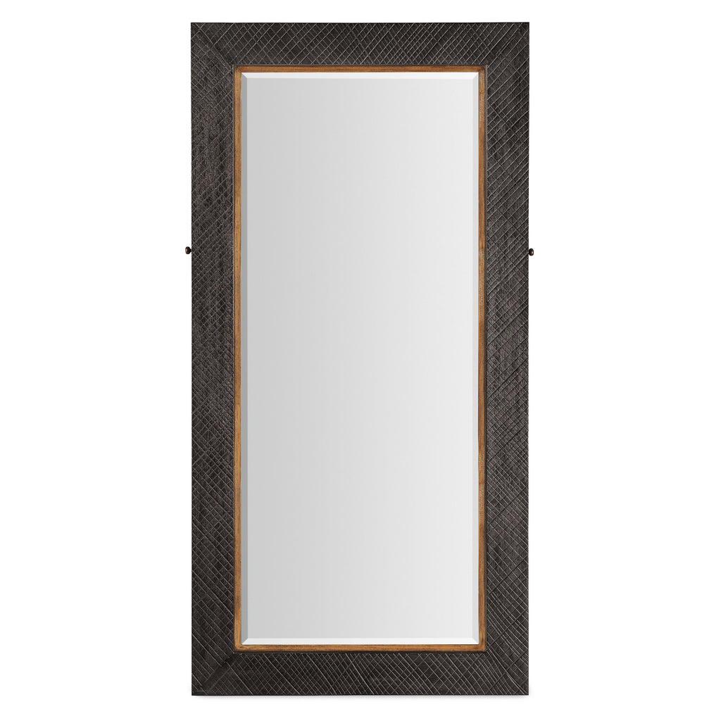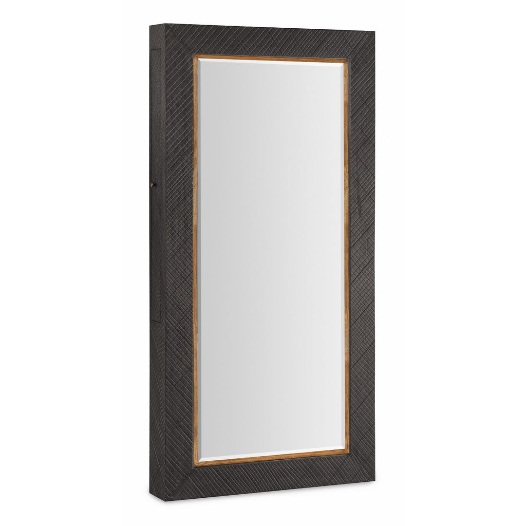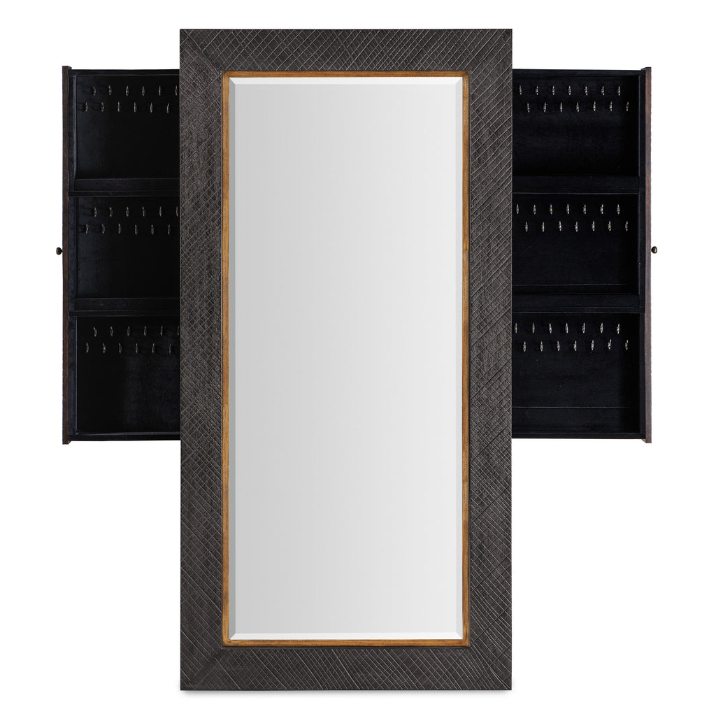 • Finish: Furrowed Bark, a charcoal finish with a crosshatch texture, is the main finish with a contrasting trim in Vintage Natural around the mirror
