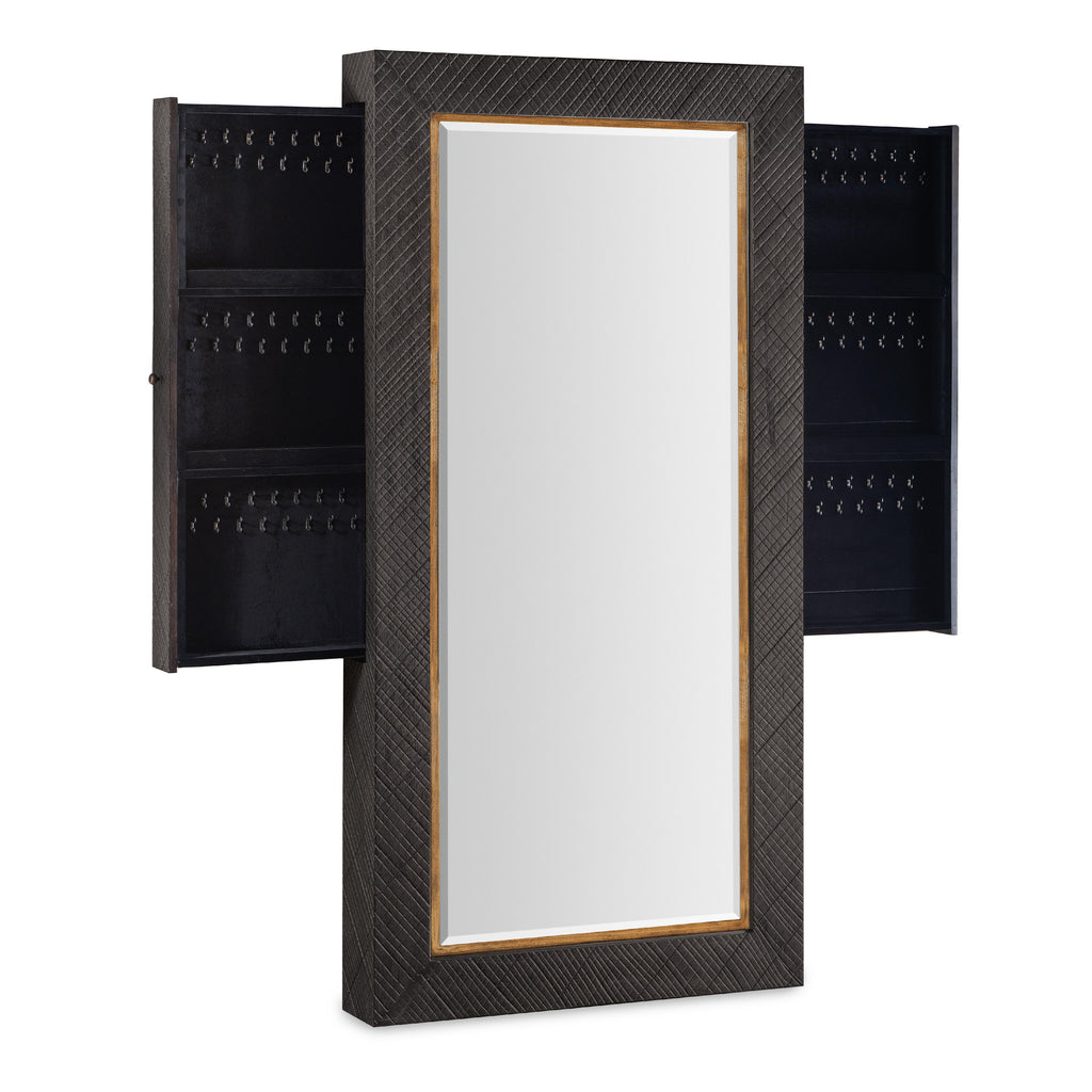 • Each side has one round pull to access pullout jewelry storage