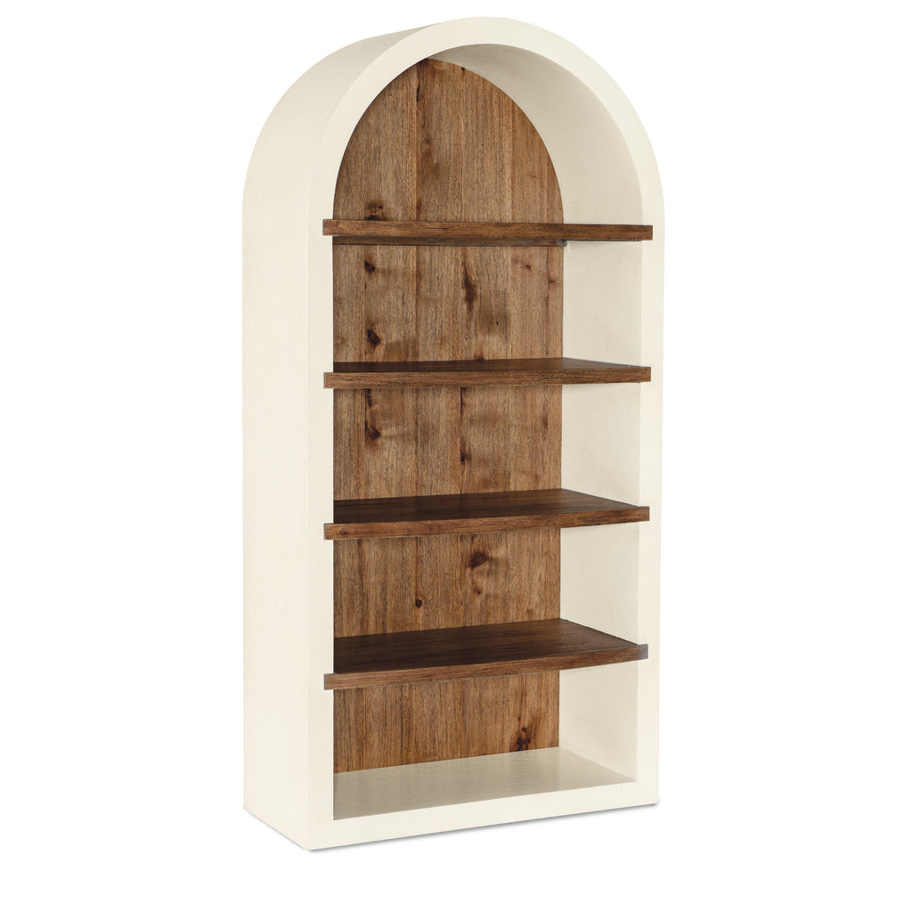 • Finish: Contrasting Avalanche white finish with Vintage Natural shelves and back panel. Avalanche recalls the blankets of snow that feed the streams and rivers of America's Western landscapes. Vintage Natural is a warm, rustic, organic finish over hickory veneers. Distressing includes chopping, rock, drawknife, gauging, chain distressing and wire brush.