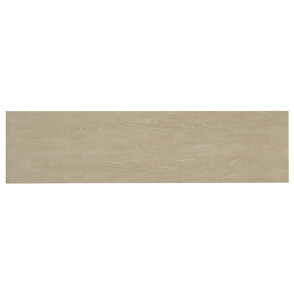 • Finish: Terrain: a soft, taupe finish on oak veneers. Distressing includes dry brushing.