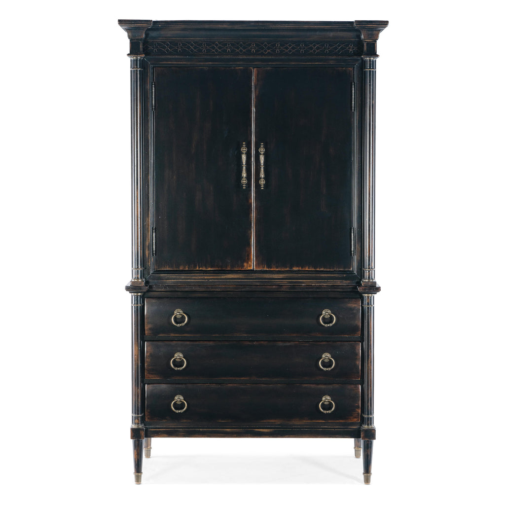 • Finish: Black Cherry: this finish emulates the vibrancy of the warm cherry finish shining from beneath the Black Cherry patina and includes subtle distressing which exemplifies the heirloom nature of the collection. Custom bar pulls and ring hardware features antique bronze color.