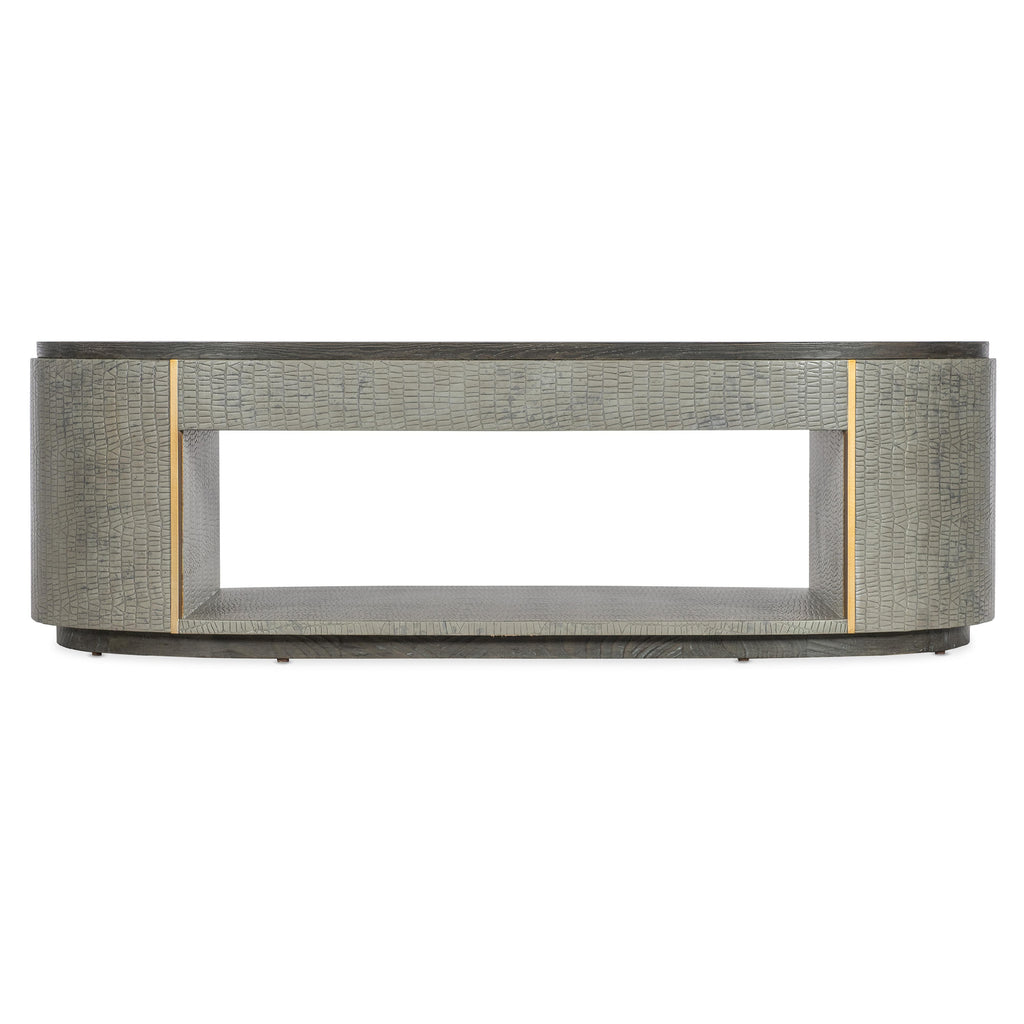 • Finish: Gray crocodile exterior with gold metal accents and dark wood top and base