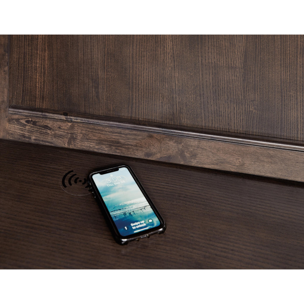 • Finish: Dark Roast finish with silver metal trim and polished stainless bar pulls