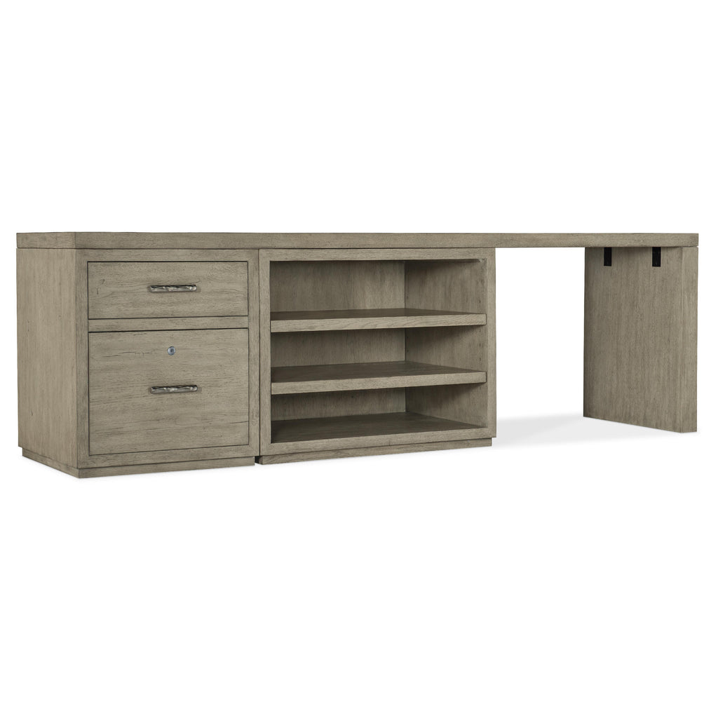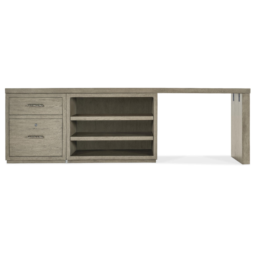 • Includes 96-inch top, a small file, an open desk cabinet and leg end panel