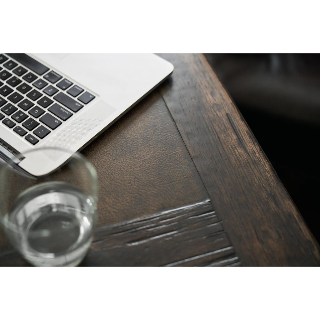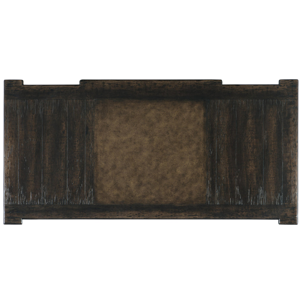 • Primary Materials: Pecky Hickory Veneer, Leather and Solid-Wood Edge Top