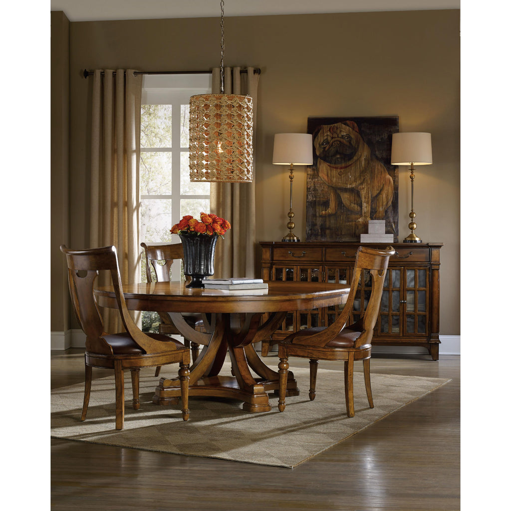 • Will seat up to six guests with leaf in place