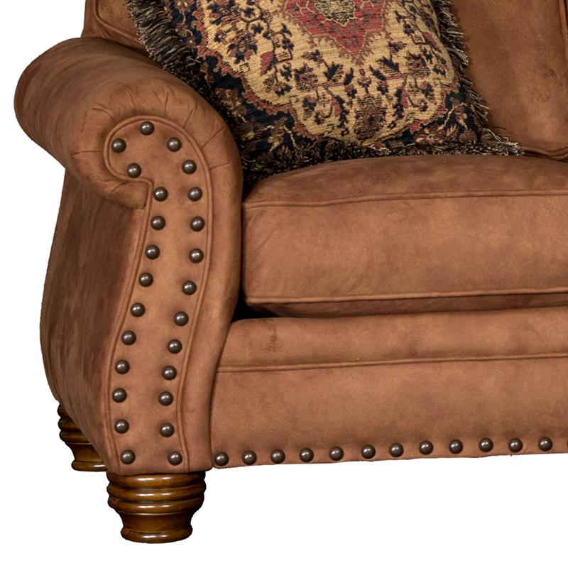 Contrast arm pillows; Pillow treatment; nailhead, wood finish