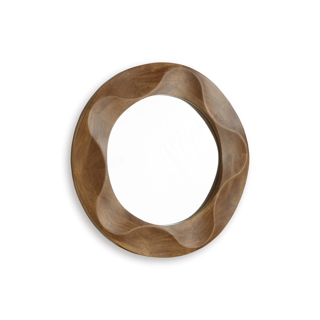 Eye-catching natural beauty. This accent mirror brings movement and depth to your decor with the frame’s undulating wave design. A... Eye-catching natural beauty. This accent mirror brings movement and depth to your decor with the frame’s undulating wave design. A classic brown finish adds a warm, inviting feel to this contemporary piece. View more