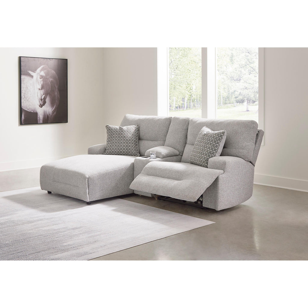 • Includes 3 modular pieces: left-arm facing power reclining back chaise, console with storage and right-arm facing power recliner
