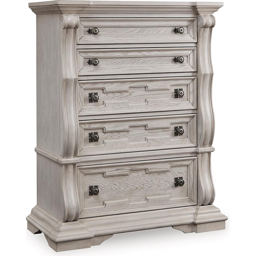 • 5 smooth-gliding drawers with fully finished interiors, English dovetail construction and heavy-duty ball-bearing side glides (top drawer felt lined)