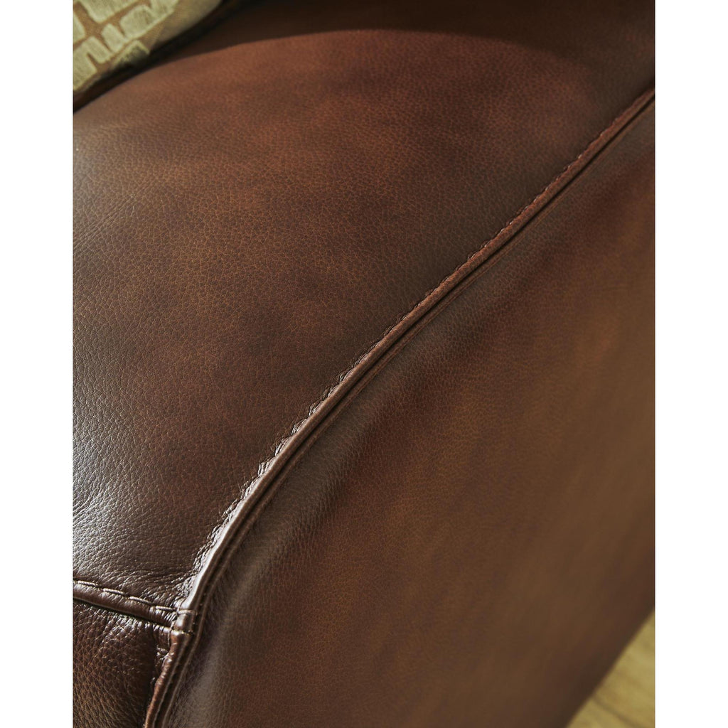 • Genuine leather covers inside areas such as the back, seat and arm cushions; skillfully matched faux leather covers the remaining areas