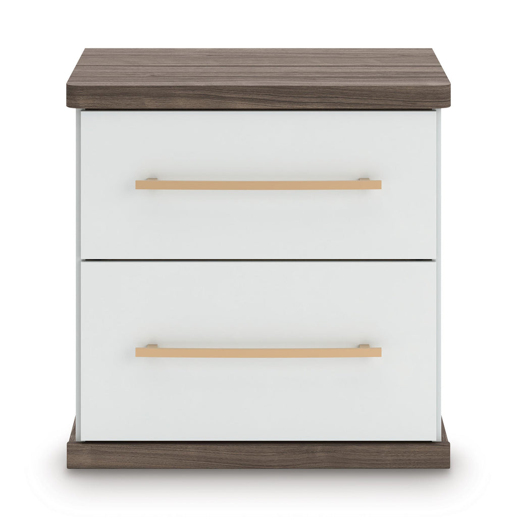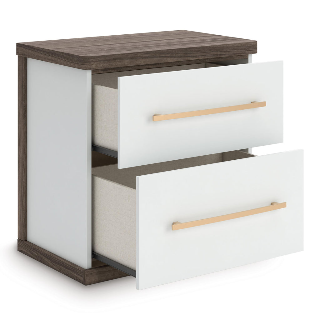 • Two-tone finish (dark brown finish over replicated walnut grain; matte white finish)