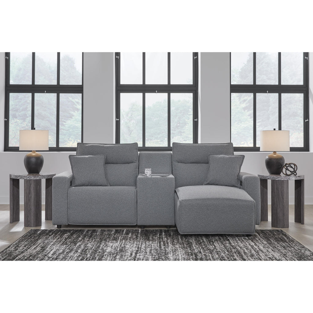 • Includes 3 modular pieces: left-arm facing power recliner, console and right-arm facing power reclining back chaise
