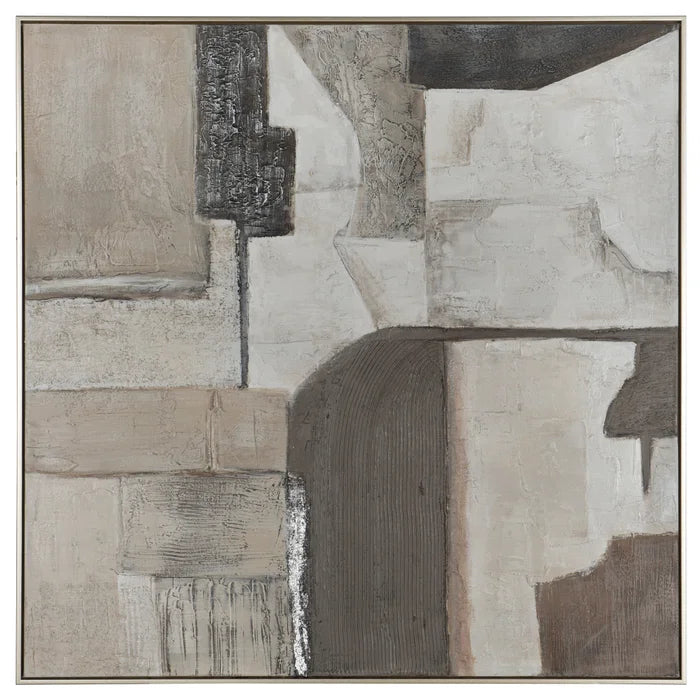 StyleCraft Home Collection STEPPING STONES II Hand Painted Mixed Media Abstract Canvas Art with Champagne Frame  47in x 47in